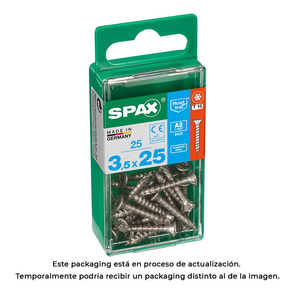 CAJA 25 unid. TORNILLO MADERA SPAX CABEZA PLANA INOX A2 3,5x25mm SPAX