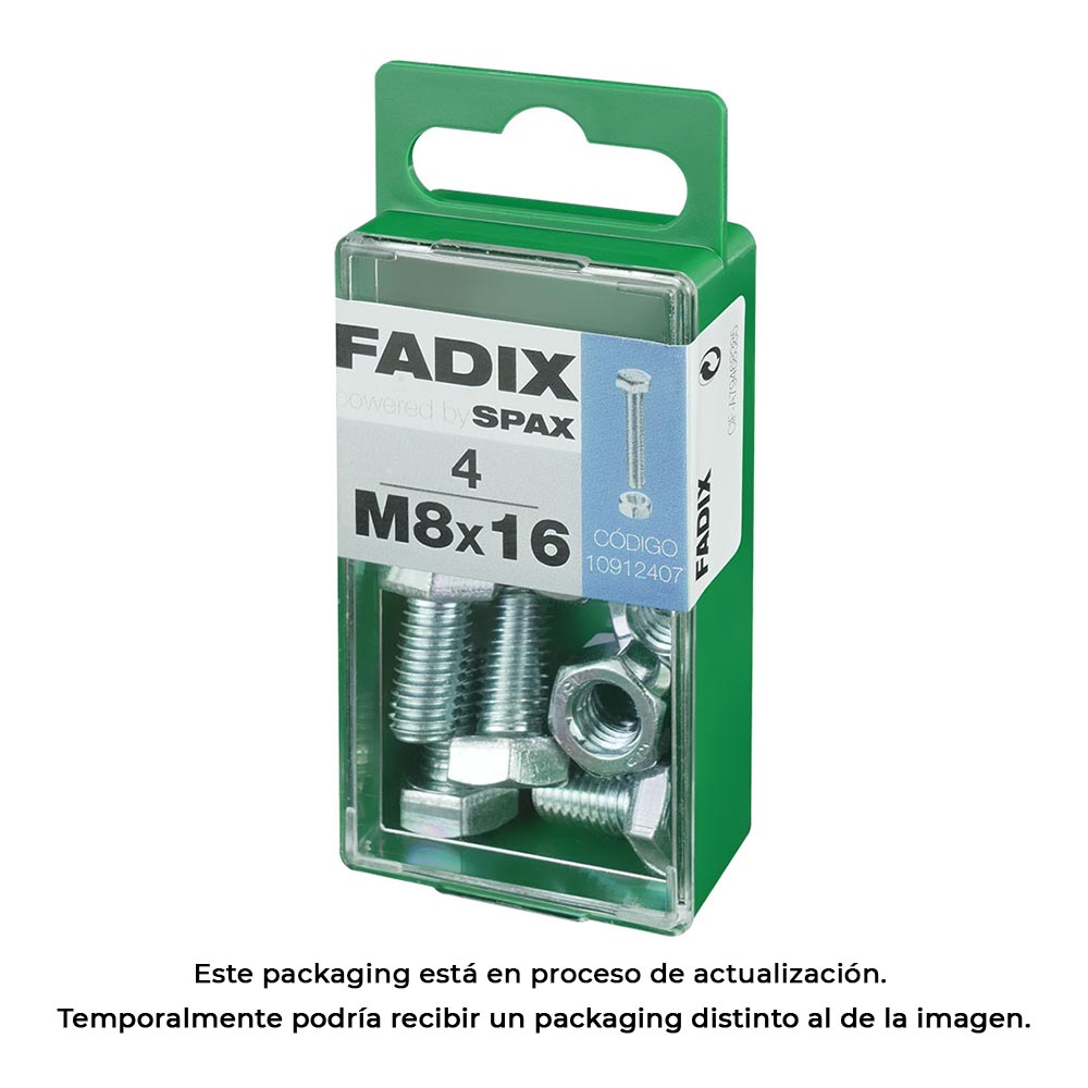 CAJA S 4 unid. TORNILLO METRICA CAB HEX+TUERCA CINC M 8x16mm FADIX