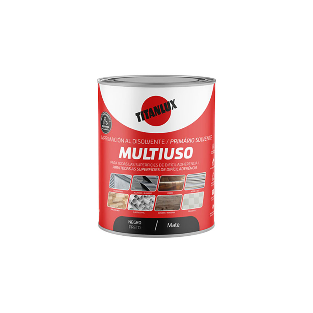 IMPRIMACIÓN MULTIUSO NEGRO MATE 750 ml ANTICORROSIVA AL DISOLVENTE DE SECADO RÁPIDO, ALTA CUBRICIÓN, BUEN SELLADO PARA TODO TIPO DE SUPERFICIES. PUENTE DE ADHERENCIA SOBRE UN GRAN NÚMERO DE SOPORTES SIN PINTAR O PINTADOS CON DIFERENTES RECUBRIMIENTOS. TRATAMIENTO EFECTIVO PARA MANCHAS DE ROTULADORES, CAFÉ, ETC. PROTECCIÓN CONTRA EL ÓXIDO EN SUPERFICIES DE HIERRO. PREPARACIÓN ADHERENTE PARA: GALVANIZADO, ALUMINIO, ACERO, LATÓN, COBRE Y ZINC. MEJORA LA ADHERENCIA EN SUPERFICIES DE PVC DURO, MELAMINA Y AZULEJOS. PARA EL PINTADO DE AZULEJOS LA IMPRIMACIÓN MULTIUSO OFRECE UNA EXCELENTE ADHERENCIA. NO APLICAR SOBRE POLIESTIRENO EXPANDIDO. SECADO 1 – 1,5 h