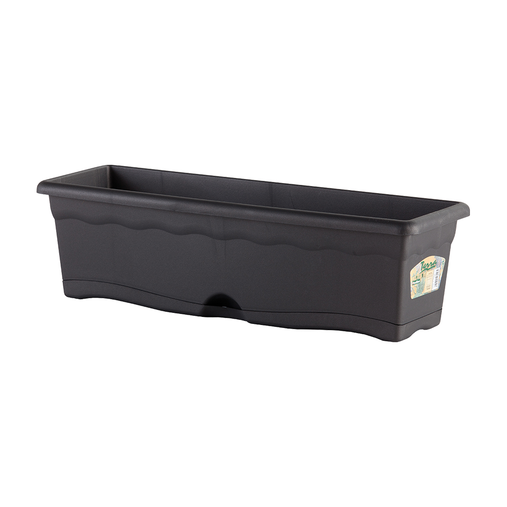 JARDINERA CON PLATO INTEGRADO COLOR ANTRACITA 80x20cm. (ancho/fondo) PENSADA PARA USO EN EXTERIORES POR SU ALTA RESISTENCIA A LOS RAYOS SOLARES, SU ROBUSTEZ Y SU TEXTURA
