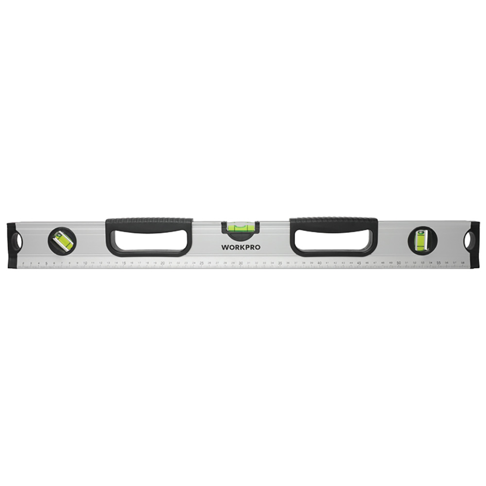 NIVEL DE BURBUJA 60cm. CONTERA A PRUEBA DE GOLPES. ALEACIÓN DE ALUMINIO. PRECISIÓN 1mm/1m, 3 VIALES (45°/90°/180°). WORKPRO