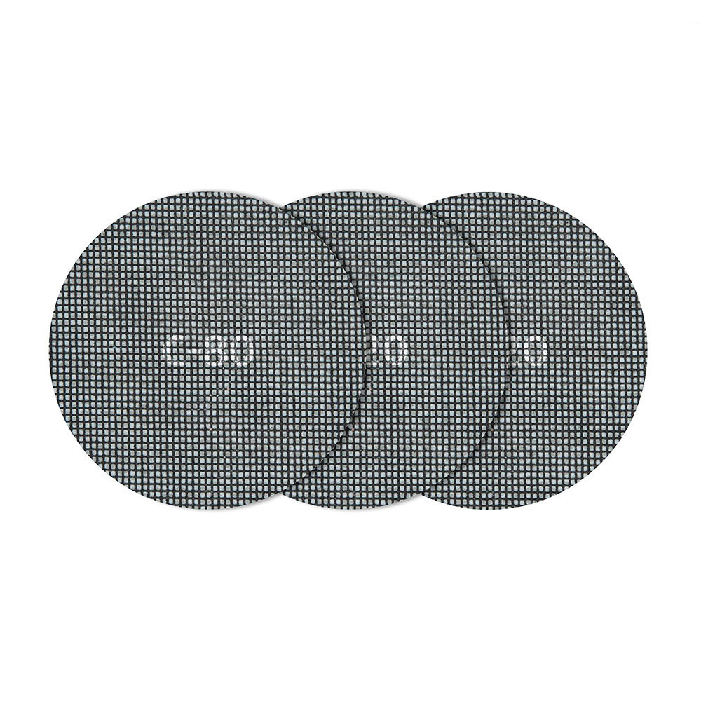 TEJIDOS DE REJILLA ADHERENTES CARBURO DE SILICIO GRANO 80,120,220, Ø125 mm, PARTE POSTERIOR AUTOADHERENTE RECUBIERTA DE TELA DE FELPA, PACK 5